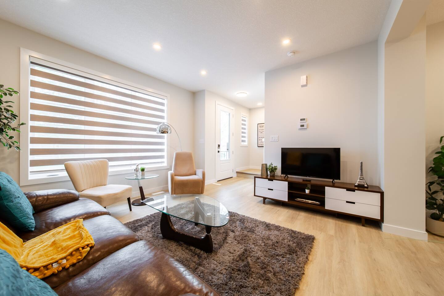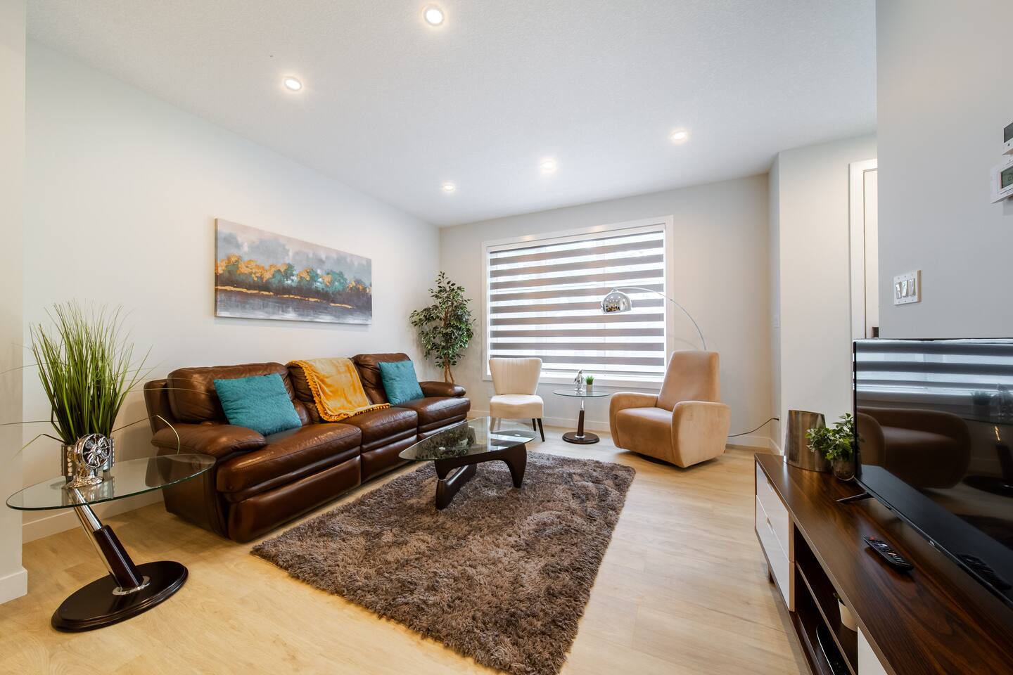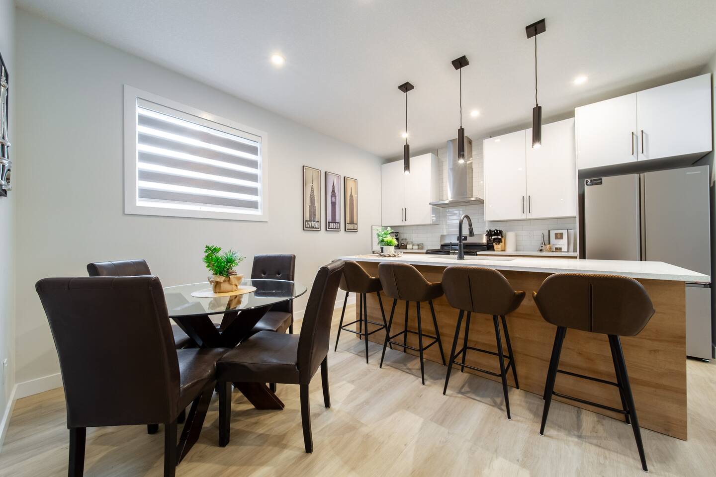 ❤︎ We know you'll love your stay in our home and everything that Edmonton has to offer. Book Today to Reserve our Beautiful Home! ❤︎ The space ! Please note, this listing is for the main floor of the home only ( Property does have 2 floors and bedrooms are located on upper floor together with 2 bathrooms). Our home does have a separate rental basement suite with their own private entrance. There are no shared spaces. ! Check out our other listing in case you're interested in renting the whole house. Step out from your private front entrance and you'll be greeted by the quiet street of family friendly neighbourhood of Grovenor. What our guests love about our listing ❤︎ : ✷ Our home can comfortably accomodate up to 8 guests ! Perfect for families! ✷ Easy self-check in via secure door keypad. ✷ Fast WiFi and complimentary Netflix ✷ Fully stocked kitchen ✷ Beautifully decorated space with brand new modern furnishings. ✷ Our Home features spacious three bedrooms and 2.5 bathrooms- plenty of space for entire family. ✷ very close to WEM - west Edmonton mall and activities everyone from the family can enjoy. ✷ Professionally cleaned and sanitized between each and every guest. ✷ Free parking inside the garage or outside on the parking pad in front of garage ✷ Wifi on our SMART TV which features complimentary Netflix. ✷ Pack_n_play and high chair Enjoy complimentary wireless internet with Netflix, tea , coffee or hot chocolate during your stay! Fully stocked kitchen with brand new stainless steel appliances. All beds are made with freshly cleaned linens for your comfort and wellbeing. Once you stay with us, you'll feel like you're simply staying at your own home because all the amenities are at your fingertips. Stay with us and enjoy a home away from home ! What our guests don't like about our listing as much: - No Central A/C so some rooms can get warm during the summer months. We provide portable A/C in master bedroom and portable fans to help move the Air - no accessible closet in master bedroom You have full and total access to the suite during your stay. Feel free to stream Netflix as much as you like, whip up anything you can dream of in our fully stocked chef's kitchen, or jump in your car/take an Uber WEM or Downtown. Other things to note There is keyless entry to our home. Full check in instructions will be shared with you after security deposit has been provided. We have security cameras installed (main entrance, back door entrance, above garage doors at the back ) for safety of all of our guests. All cameras record to the cloud 24/7, for security purposes. Please remember that you're staying in our home, not a hotel. Please treat the place with respect. If any problems arise, we will do our best to take action ASAP, but there is no one living on site 24/7. **PLEASE NOTE** - WE DO REQUIRE A $700 REFUNDABLE SECURITY DEPOSIT TO BE PAID. The refundable security deposit will be refunded after check-out (granted that there is no missing items, damages etc. to our home after your stay). Please note that profiles with a lower review rating than 4 stars will not be allowed to book our property on an instant book basis and if for whatever reason the reservation confirms through the system, the reservation may be cancelled. For guests with new profiles without reviews, these requests will be reviewed manually and will be subject to screening and questioning before a reservation may be confirmed. This applies for instant bookings too, additional questions may be asked even after the reservation has been confirmed.