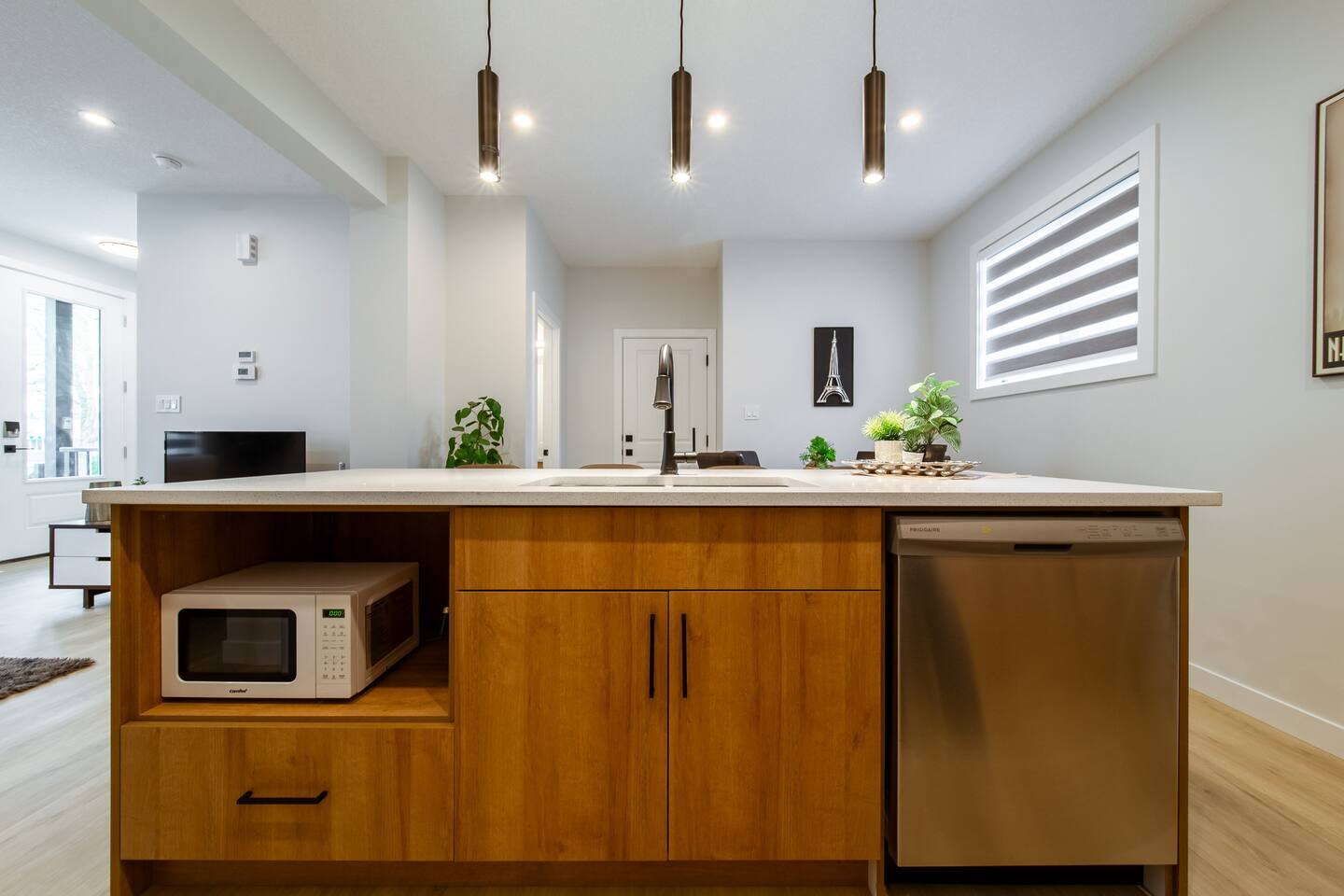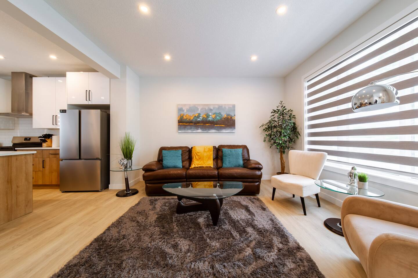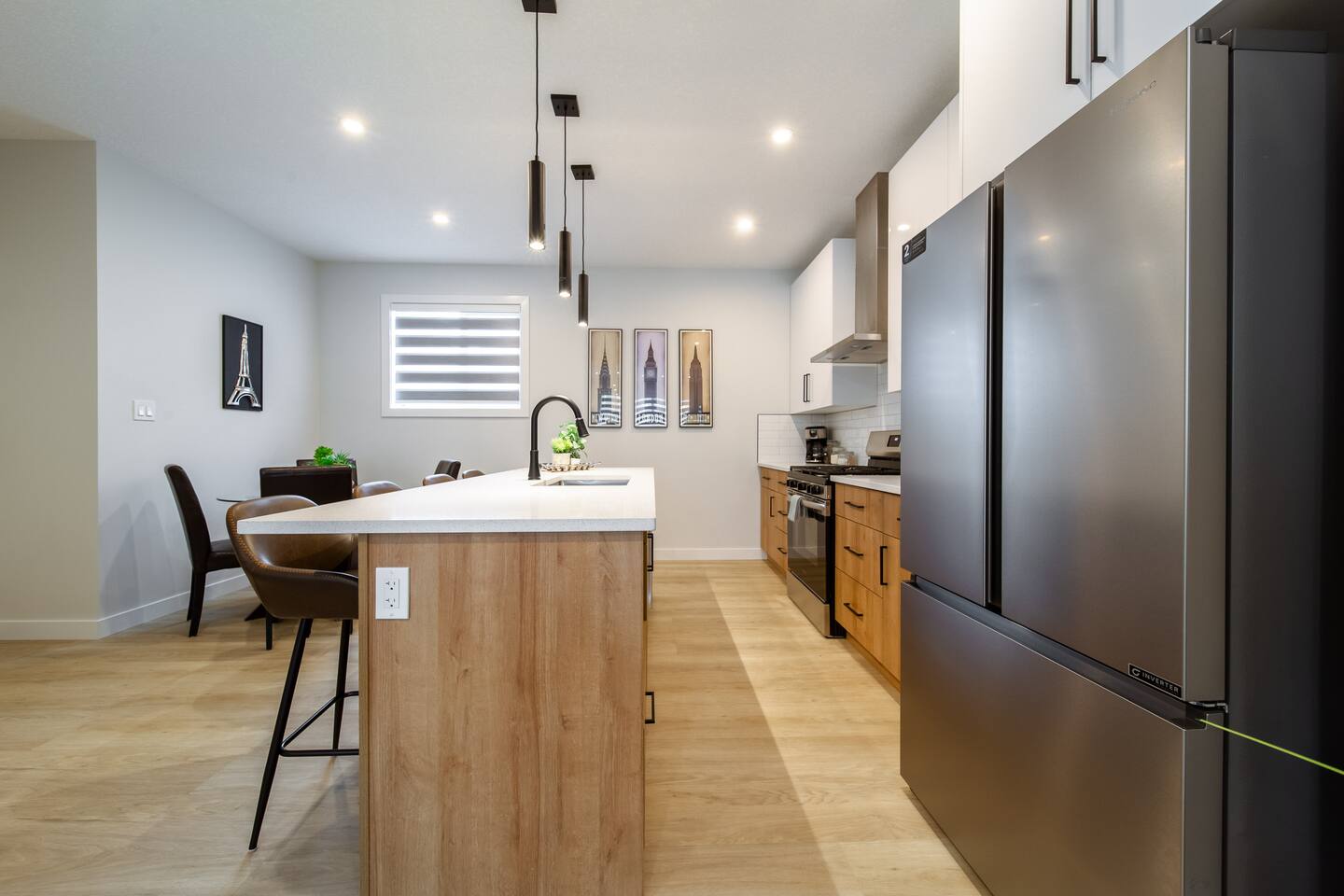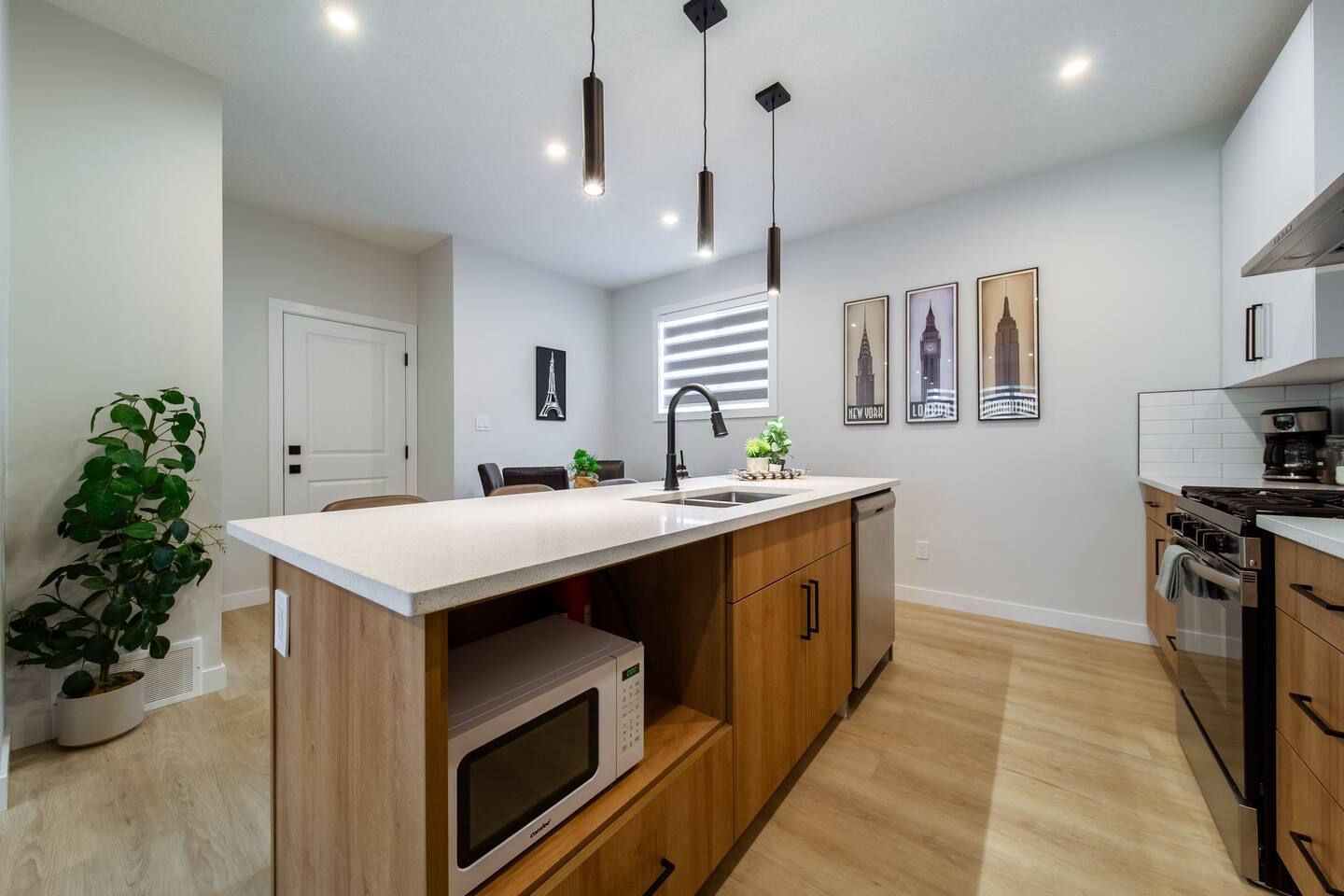 ❤︎ We know you'll love your stay in our home and everything that Edmonton has to offer. Book Today to Reserve our Beautiful Home! ❤︎ The space ! Please note, this listing is for the main floor of the home only ( Property does have 2 floors and bedrooms are located on upper floor together with 2 bathrooms). Our home does have a separate rental basement suite with their own private entrance. There are no shared spaces. ! Check out our other listing in case you're interested in renting the whole house. Step out from your private front entrance and you'll be greeted by the quiet street of family friendly neighbourhood of Grovenor. What our guests love about our listing ❤︎ : ✷ Our home can comfortably accomodate up to 8 guests ! Perfect for families! ✷ Easy self-check in via secure door keypad. ✷ Fast WiFi and complimentary Netflix ✷ Fully stocked kitchen ✷ Beautifully decorated space with brand new modern furnishings. ✷ Our Home features spacious three bedrooms and 2.5 bathrooms- plenty of space for entire family. ✷ very close to WEM - west Edmonton mall and activities everyone from the family can enjoy. ✷ Professionally cleaned and sanitized between each and every guest. ✷ Free parking inside the garage or outside on the parking pad in front of garage ✷ Wifi on our SMART TV which features complimentary Netflix. ✷ Pack_n_play and high chair Enjoy complimentary wireless internet with Netflix, tea , coffee or hot chocolate during your stay! Fully stocked kitchen with brand new stainless steel appliances. All beds are made with freshly cleaned linens for your comfort and wellbeing. Once you stay with us, you'll feel like you're simply staying at your own home because all the amenities are at your fingertips. Stay with us and enjoy a home away from home ! What our guests don't like about our listing as much: - No Central A/C so some rooms can get warm during the summer months. We provide portable A/C in master bedroom and portable fans to help move the Air - no accessible closet in master bedroom You have full and total access to the suite during your stay. Feel free to stream Netflix as much as you like, whip up anything you can dream of in our fully stocked chef's kitchen, or jump in your car/take an Uber WEM or Downtown. Other things to note There is keyless entry to our home. Full check in instructions will be shared with you after security deposit has been provided. We have security cameras installed (main entrance, back door entrance, above garage doors at the back ) for safety of all of our guests. All cameras record to the cloud 24/7, for security purposes. Please remember that you're staying in our home, not a hotel. Please treat the place with respect. If any problems arise, we will do our best to take action ASAP, but there is no one living on site 24/7. **PLEASE NOTE** - WE DO REQUIRE A $700 REFUNDABLE SECURITY DEPOSIT TO BE PAID. The refundable security deposit will be refunded after check-out (granted that there is no missing items, damages etc. to our home after your stay). Please note that profiles with a lower review rating than 4 stars will not be allowed to book our property on an instant book basis and if for whatever reason the reservation confirms through the system, the reservation may be cancelled. For guests with new profiles without reviews, these requests will be reviewed manually and will be subject to screening and questioning before a reservation may be confirmed. This applies for instant bookings too, additional questions may be asked even after the reservation has been confirmed.